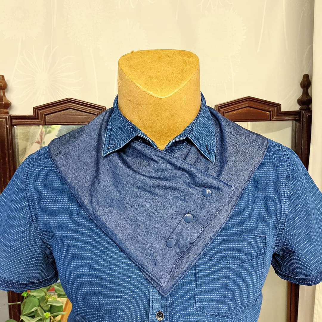 We were asked to design a bib for my soon to be adult nephew that did not look like a bib, and after a brainstorming session and a bit of informed inspo searching online at the current trends in Korean Men’s Neckwear fashions, I draped and drafted the ‘Adult Special Needs Scarf Bib.’