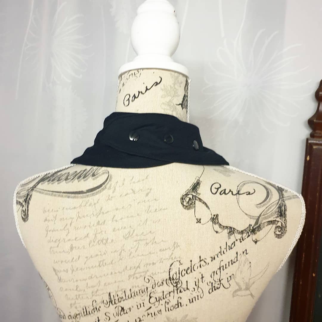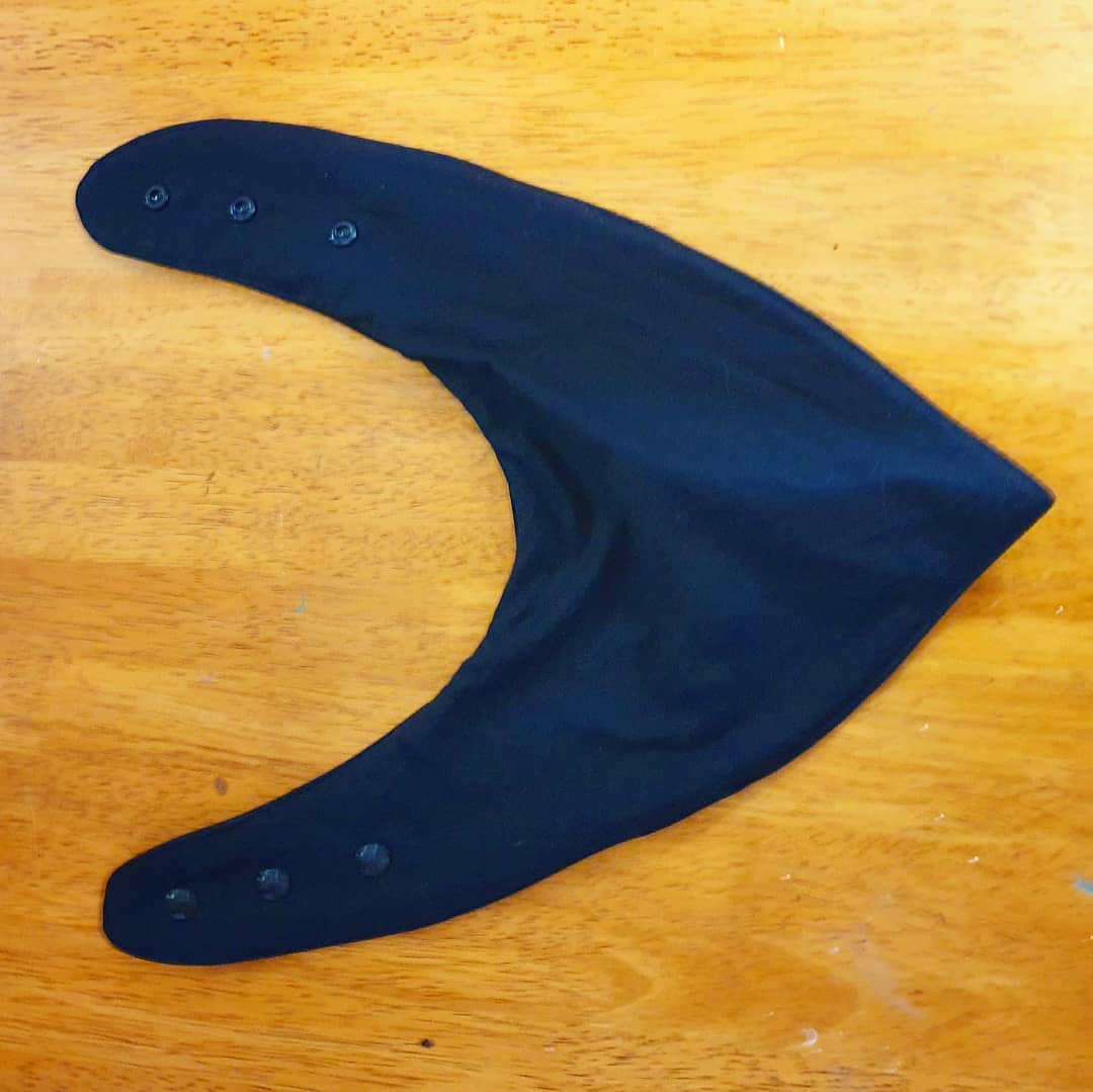So I drafted and tested a new pattern enlarged from a baby bib up so it would fit a larger neck and head and figured out how to make the top layer drape more bandana like, but still fit around the edges, and be adjustable.