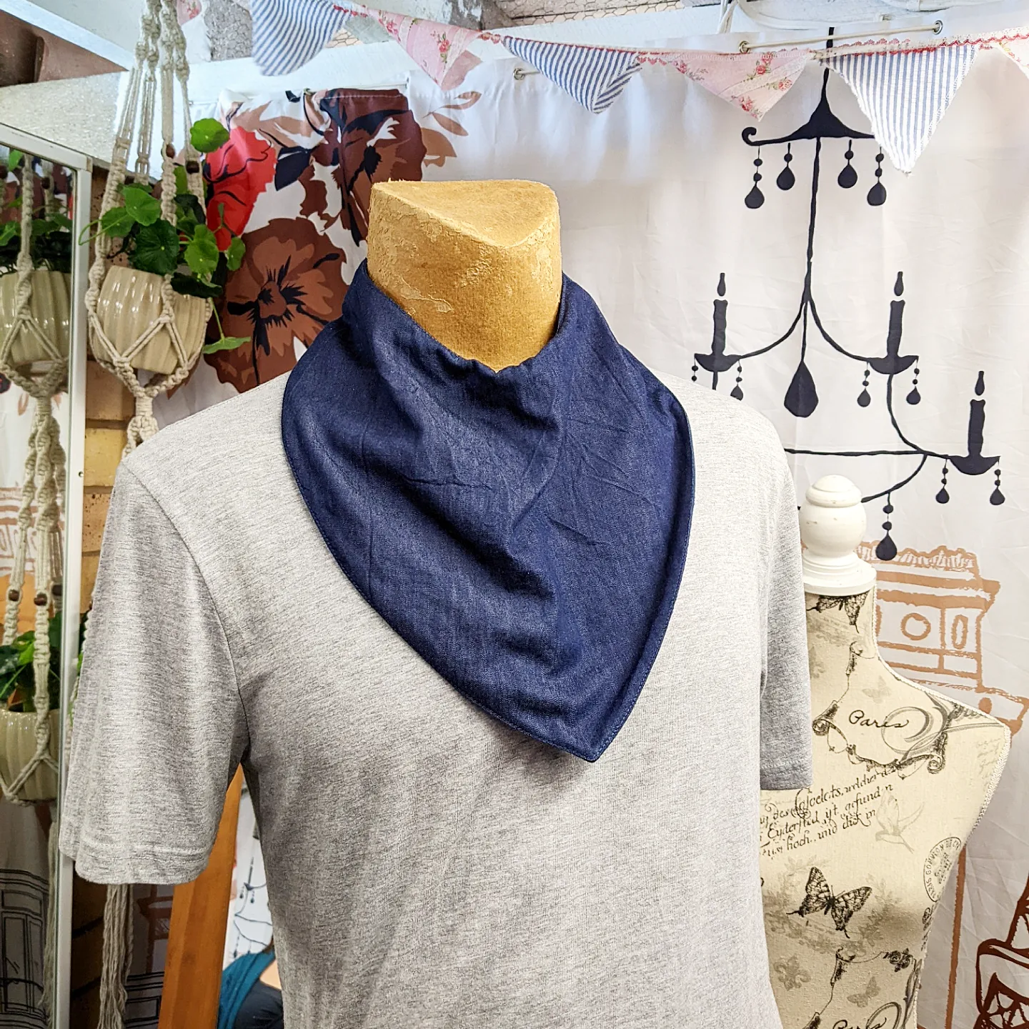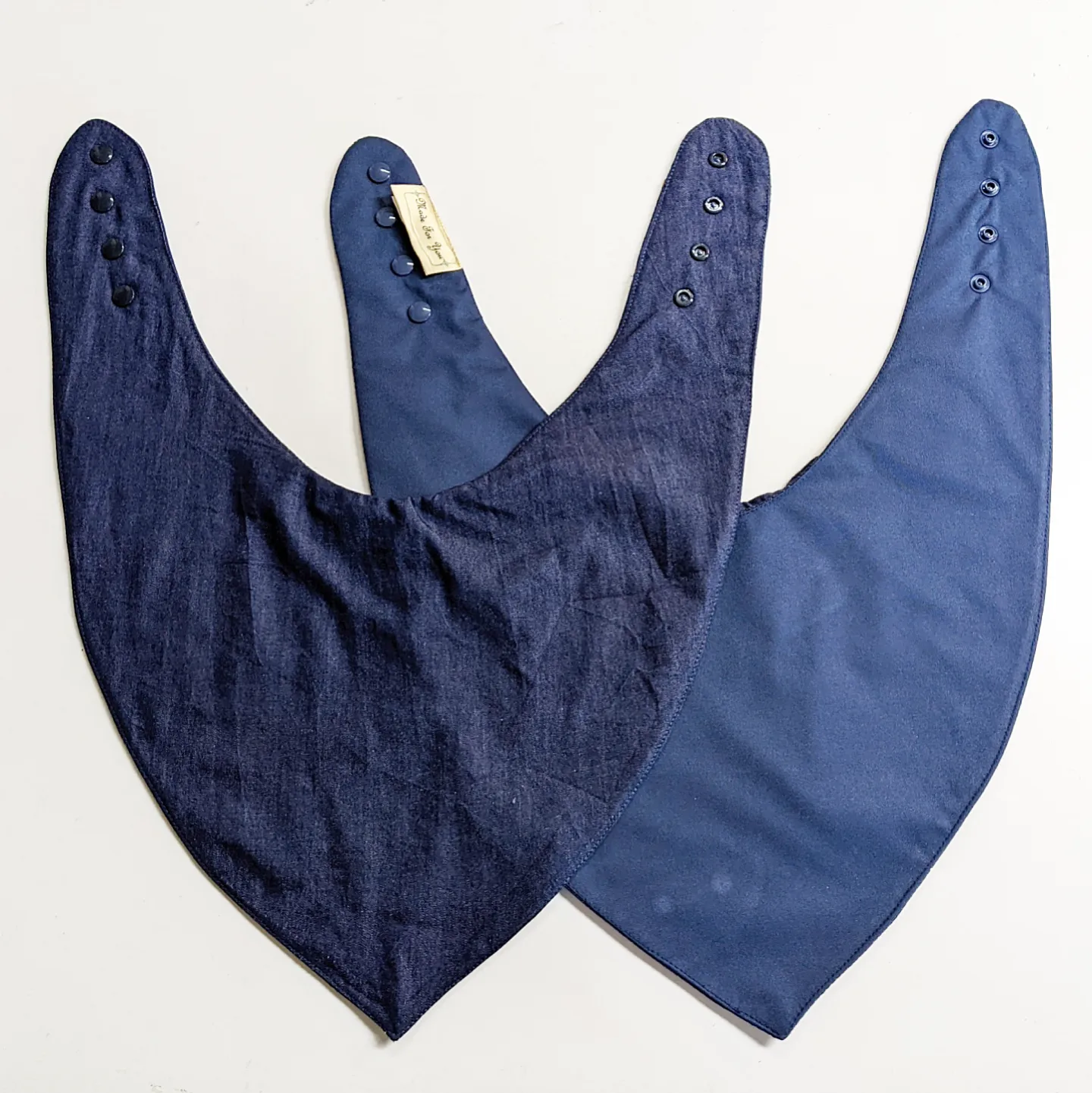 These bandana bibs are designed to cover mostly the under chin area, and are purposely narrower around the back of the neck to avoid any unnecessary warmth in our hot climate.
