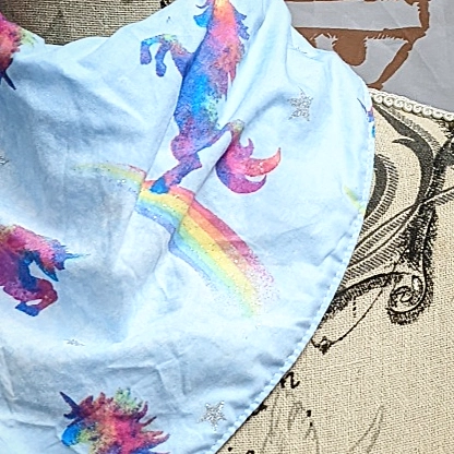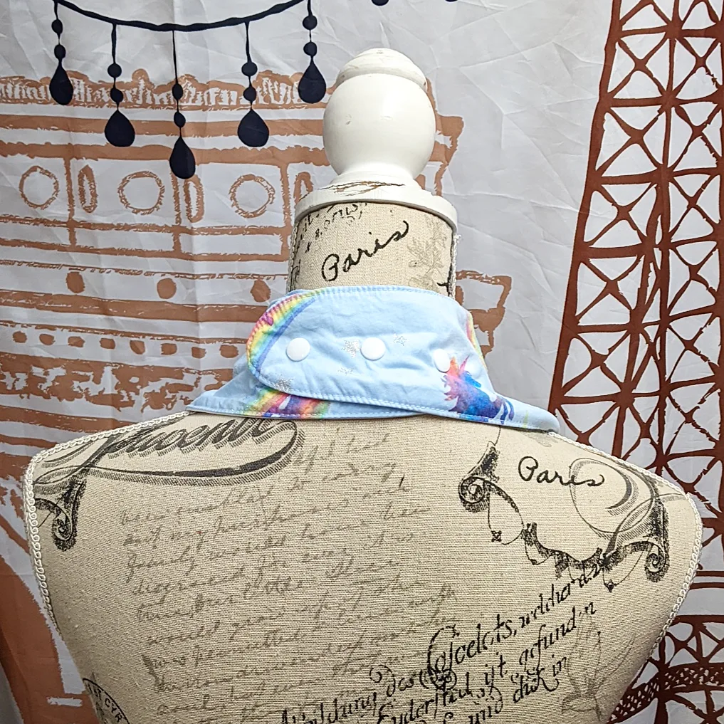 Our Cotton “Blue Rainbow Unicorns Print” Bibs are made with 3 distinct Layers:
