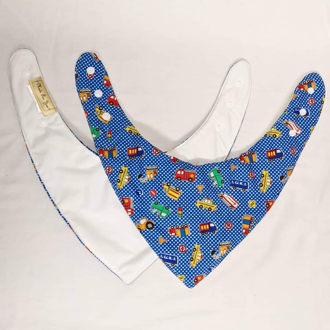 Made to protect the kid’s clothing and keep them dry so you only need to change the bib instead of going through the hassle of undressing and redressing several times a day. They come in a huge array of colours and prints, and are easily taken off and on and adjustable with 3-4 snaps across the back of the neck evenly spaced so any overlapping ones snap into each other, simply adding a little padding behind the neck.