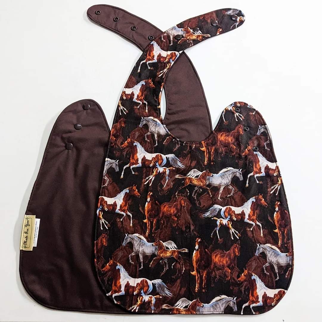 Horses Multi Size Special Needs Side Fastening Bib Made in Australia