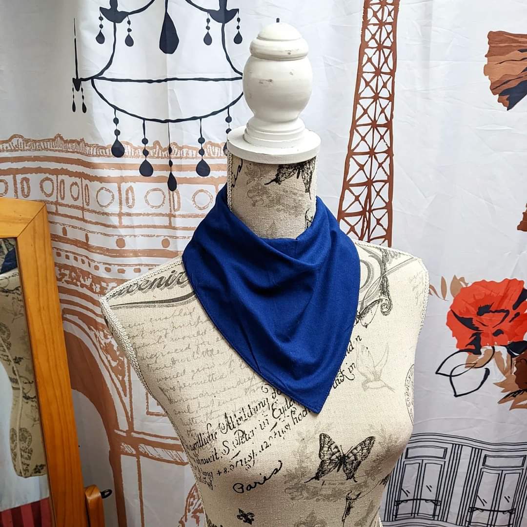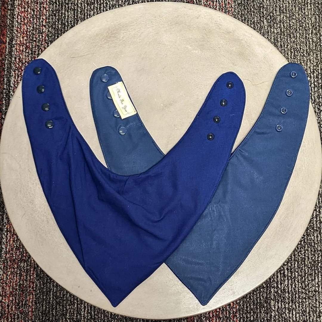 So I drafted and tested a new pattern enlarged from a baby bib up so it would fit a larger neck and head and figured out how to make the top layer drape more bandana like, but still fit around the edges, and be adjustable.