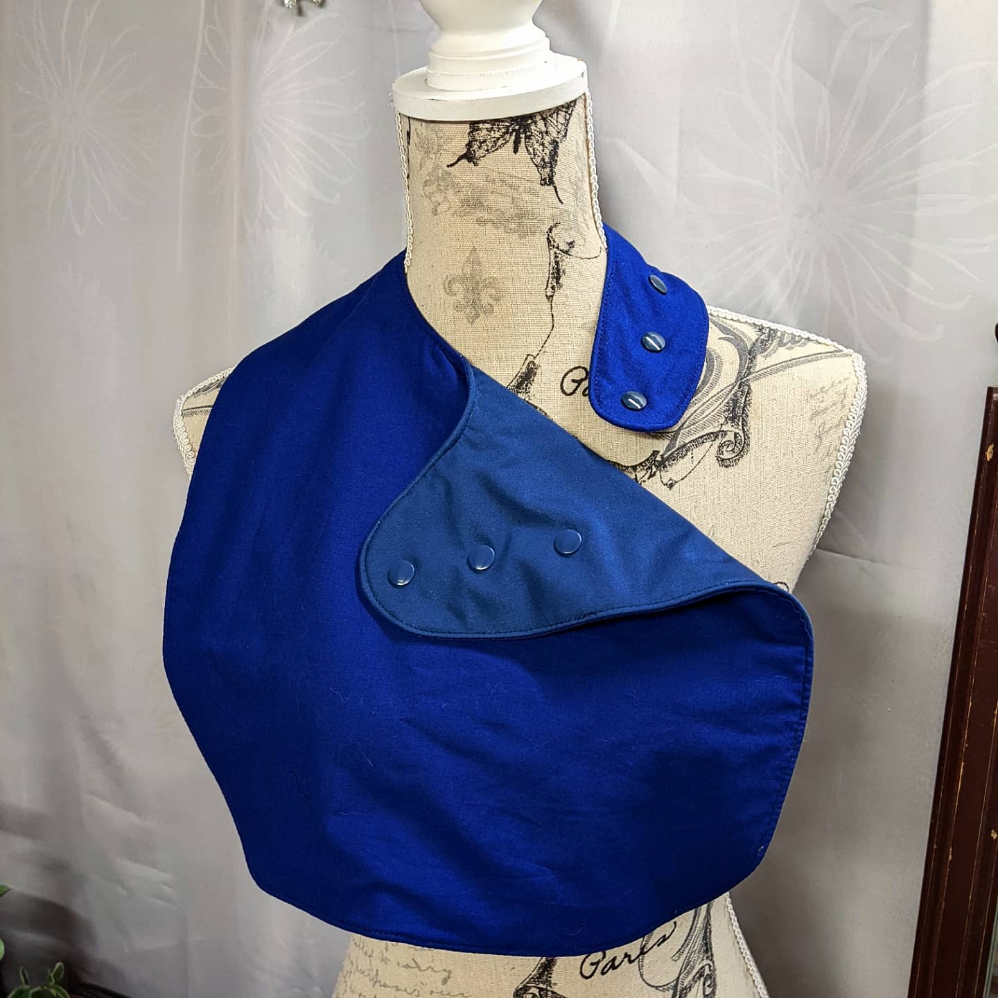 Adjustable from as small as 29 cm, up to as big as 41 cm to fit small children up to adults, the side fastening snaps allow the changing of the bib easily, and overlapping on the top avoids catching long hair in it.