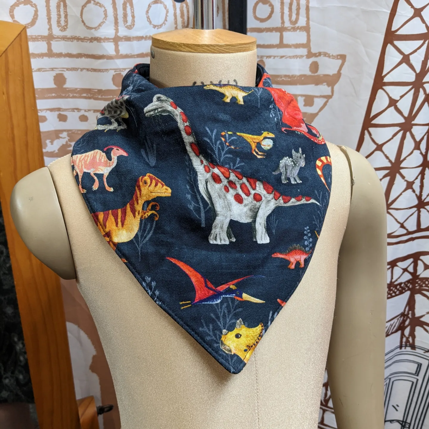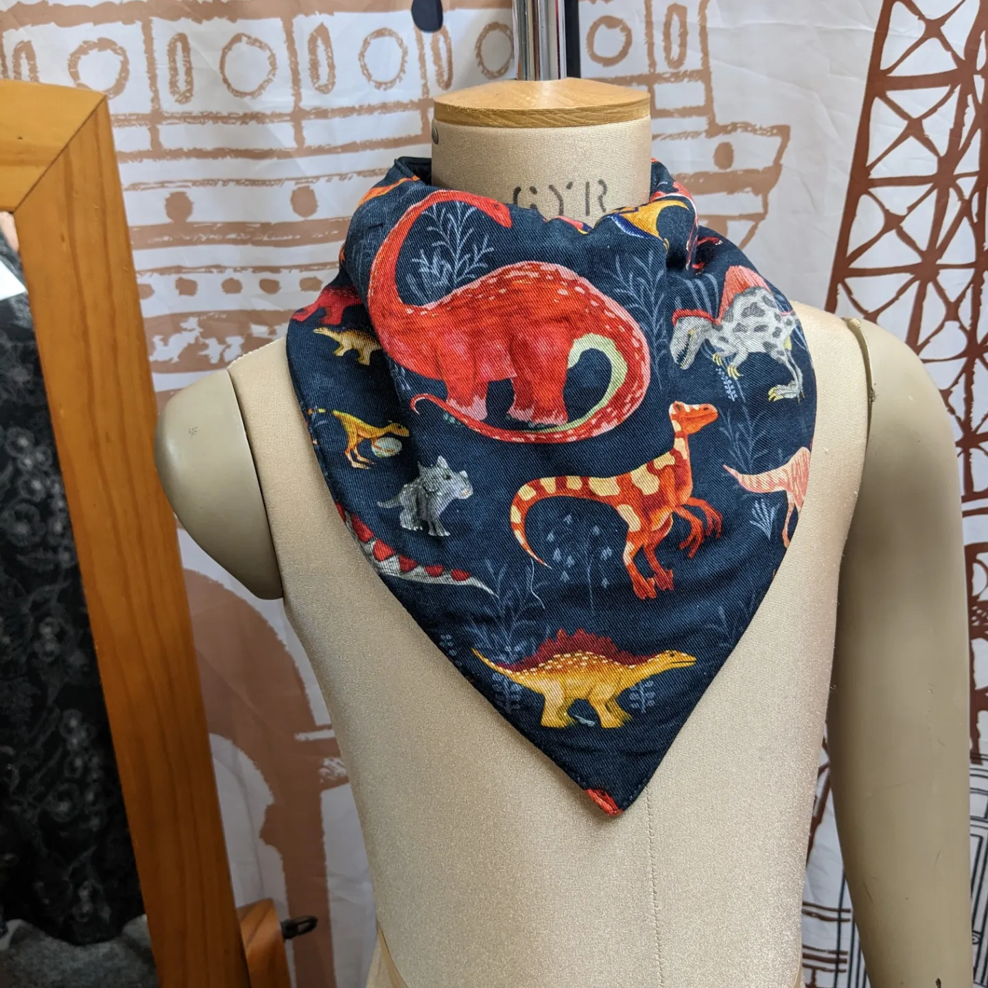 So I drafted and tested a new pattern enlarged from a baby bib up so it would fit a larger neck and head and figured out how to make the top layer drape more bandana like, but still fit around the edges, and be adjustable.