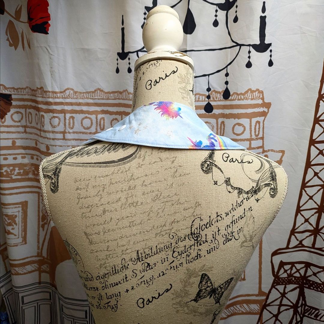 Adjustable snaps at the side of the neck adjust the neck size from as small as 29 cm, up to as big as 41 cm to fit small children up to adults, the side fastening snaps allow the changing of the bib easily, and overlapping on the top avoids catching long hair in it.