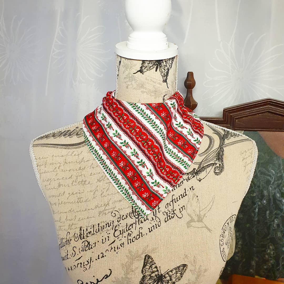Our Cotton “Red and White Lace Holly Print” Bibs are made with 3 distinct Layers: