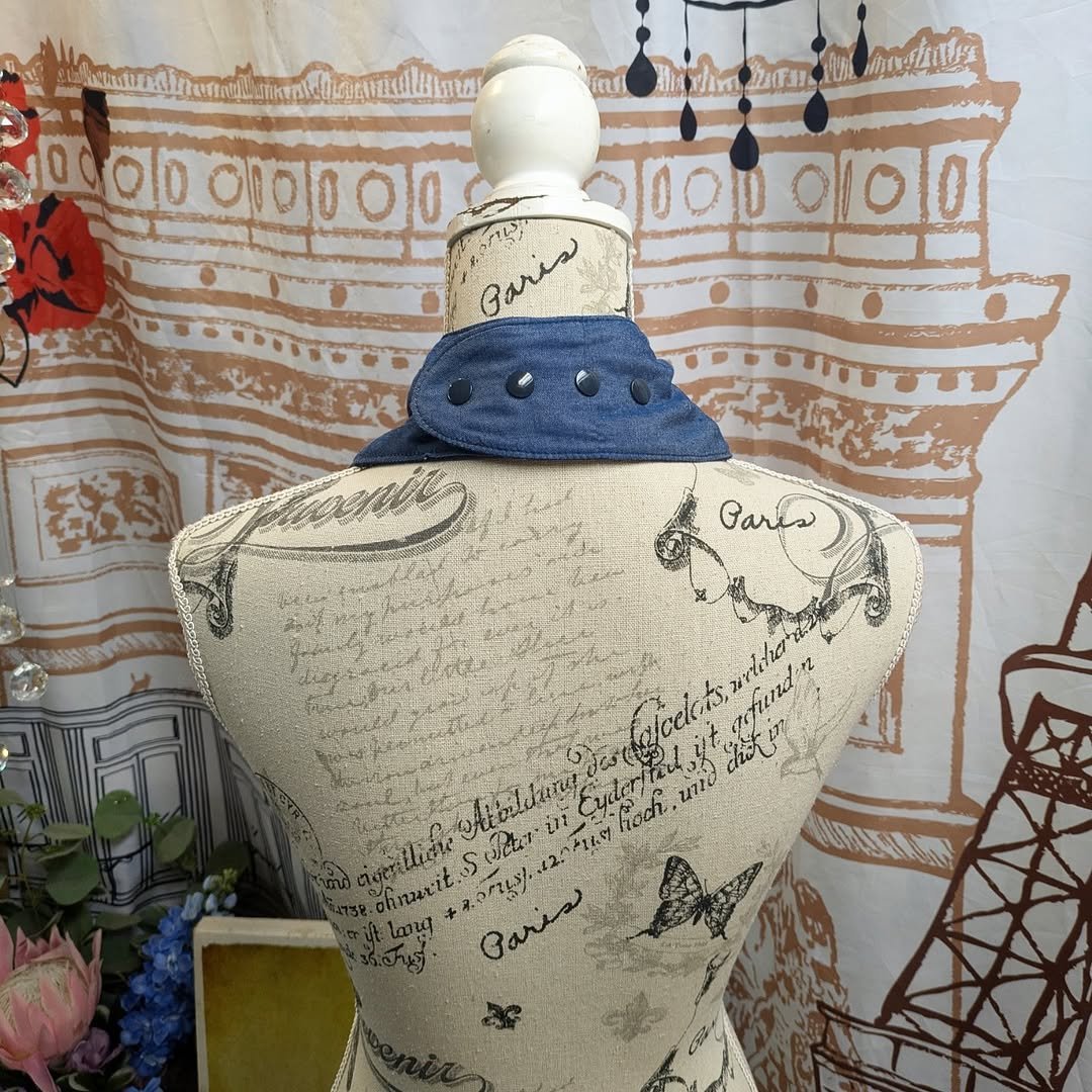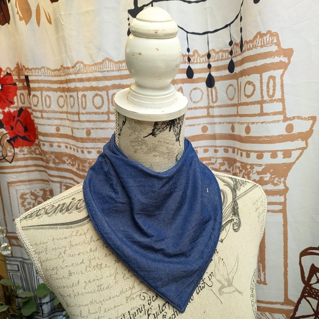 So I drafted and tested a new pattern enlarged from a baby bib up so it would fit a larger neck and head and figured out how to make the top layer drape more bandana like, but still fit around the edges, and be adjustable.